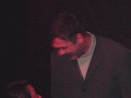 The performer stands up in front of the audience and begins to laugh–at first quietly, then more forcefully. He slaps himself in the face–trying to shake himself out of the fit. He calms down again, begins to chuckle as he did in the beginning. But then he starts getting loud again, cackling like a crazy person, right in front of the audience, until he once again smacks himself sober. The same thing happens all over again–for a third time. He hits himself hard, nearly debilitating himself.